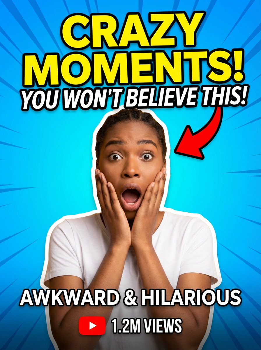 the image is a vibrant and colorful thumbnail, typically used for a youtube video. it features the exaggerated face of one model expressing shock and humor, emphasizing the crazy theme of the video. their face is outlined with a white stroke to make it stand out against the blue background. this type of design is commonly used to attract viewers on social media platforms by promising entertaining and possibly awkward content.