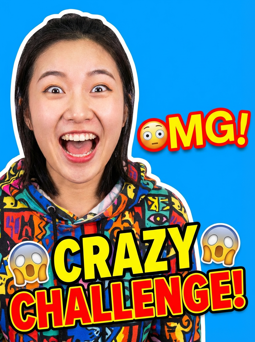 the image is a vibrant and colorful thumbnail, typically used for a youtube video. it features the exaggerated face of one model expressing shock and humor, emphasizing the crazy theme of the video. their face is outlined with a white stroke to make it stand out against the blue background. this type of design is commonly used to attract viewers on social media platforms by promising entertaining and possibly awkward content.