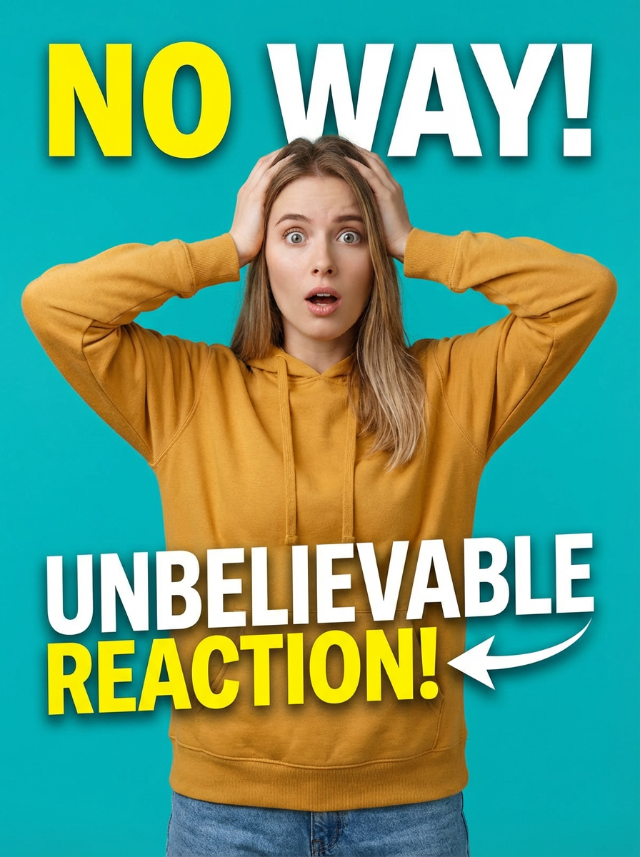 the image is a vibrant and colorful thumbnail, typically used for a youtube video. model with hands on head, disbelief expression, bright plain teal background
