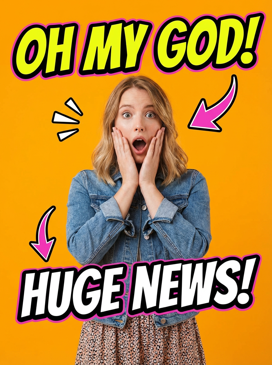 the image is a vibrant and colorful thumbnail, typically used for a youtube video. model with hands on cheeks, oh my god expression, bright plain orange background