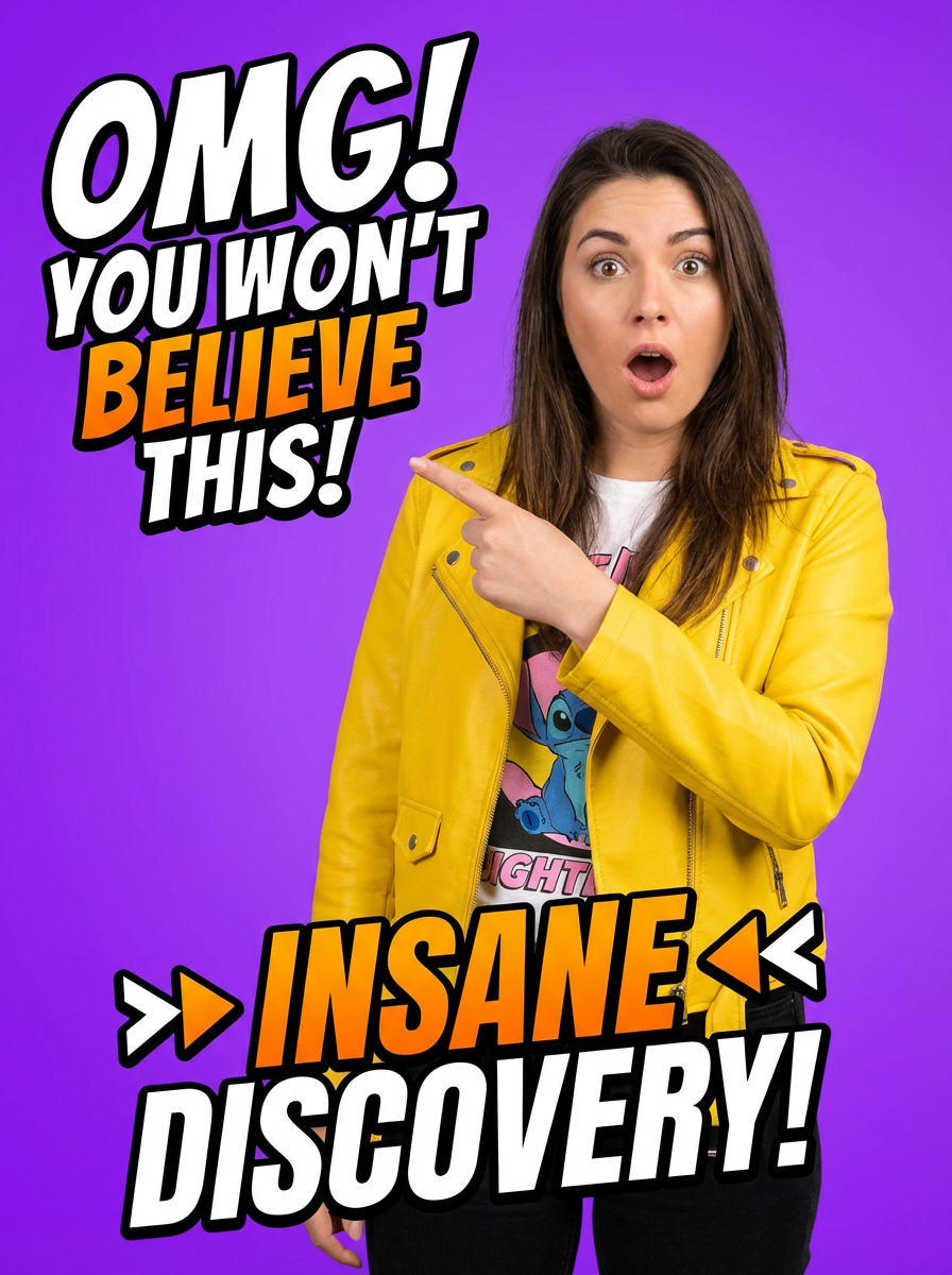 the image is a vibrant and colorful thumbnail, typically used for a youtube video. model pointing at something with surprised face, bright plain purple background