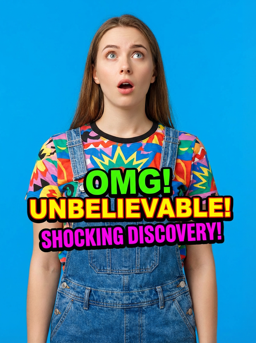 the image is a vibrant and colorful thumbnail, typically used for a youtube video. model looking up with shocked expression, bright plain blue background