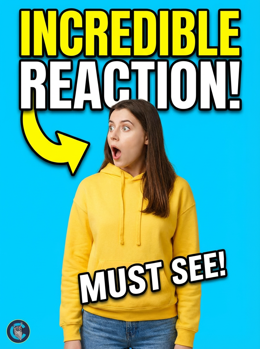 the image is a vibrant and colorful thumbnail, typically used for a youtube video. model looking left with shocked expression, bright plain blue background