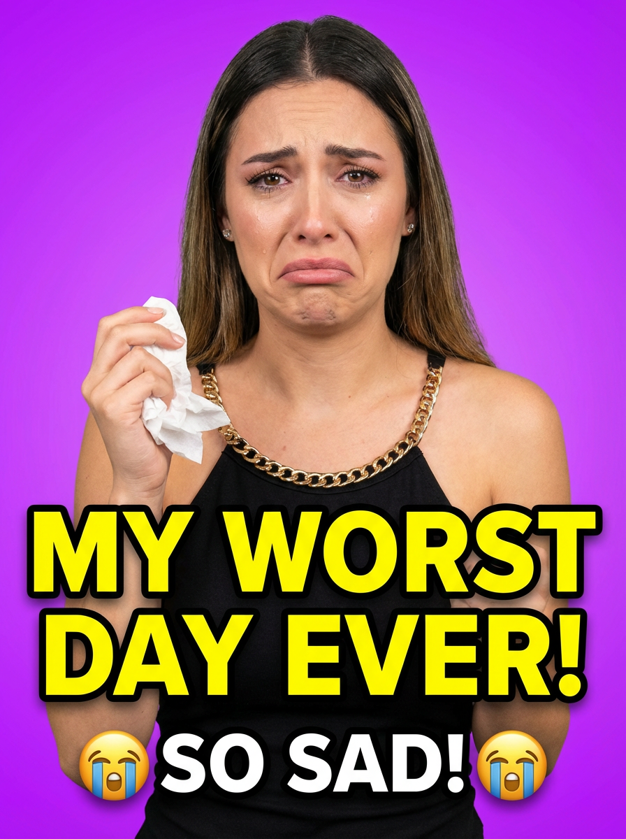 the image is a vibrant and colorful thumbnail, typically used for a youtube video. exaggerated sad unhappy miserable depressed sorrow model, bright plain purple background