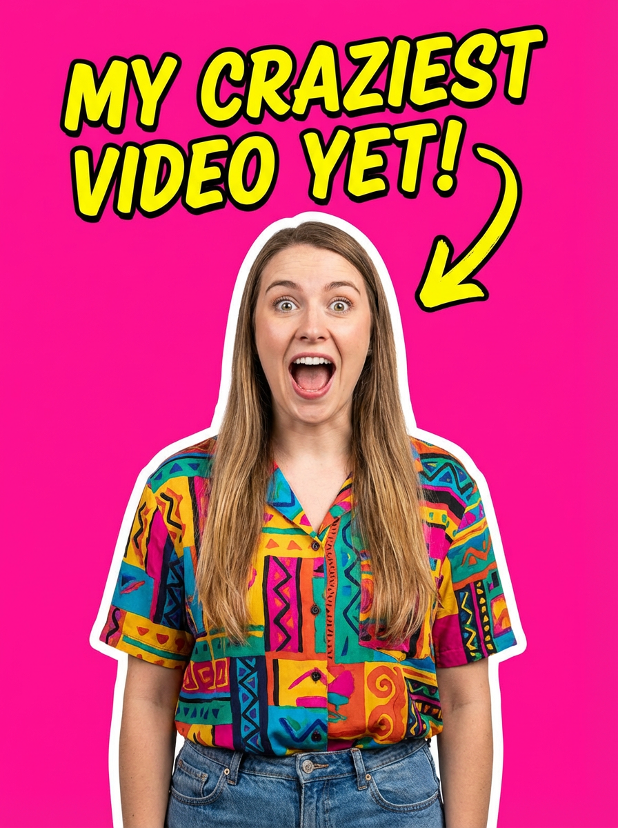 the image is a vibrant and colorful thumbnail, typically used for a youtube video. it features the exaggerated face of one model expressing shock and humor, emphasizing the crazy theme of the video. their face is outlined with a white stroke to make it stand out against the bright plain pink background. this type of design is commonly used to attract viewers on social media platforms by promising entertaining and possibly awkward content.