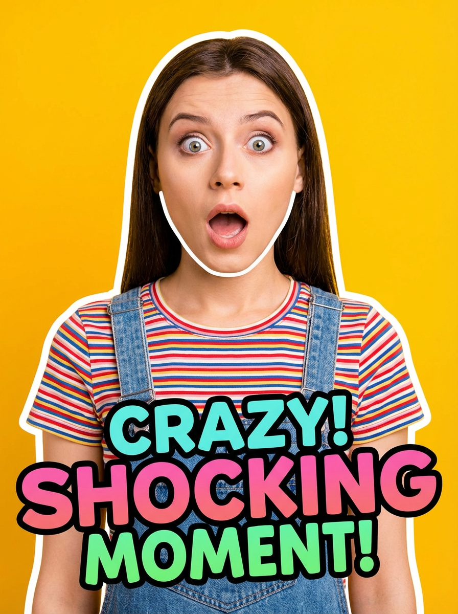 the image is a vibrant and colorful thumbnail, typically used for a youtube video. it features the exaggerated face of one model expressing shock and humor, emphasizing the crazy theme of the video. their face is outlined with a white stroke to make it stand out against the bright plain yellow background. this type of design is commonly used to attract viewers on social media platforms by promising entertaining and possibly awkward content.
