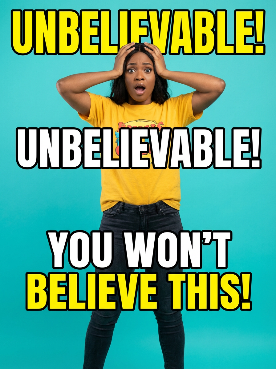 the image is a vibrant and colorful thumbnail, typically used for a youtube video. model with hands on head, disbelief expression, bright plain teal background
