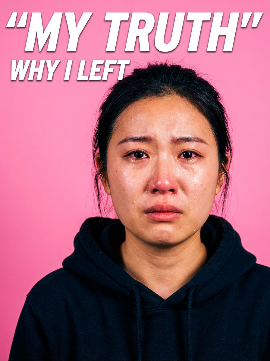 the image is a vibrant and colorful thumbnail, typically used for a youtube video. model with tears streaming down face, emotional crying, bright plain pink background