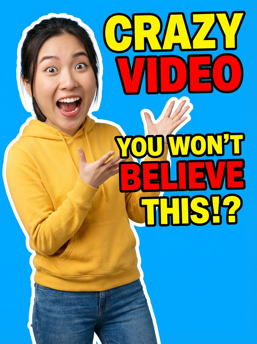 the image is a vibrant and colorful thumbnail, typically used for a youtube video. it features the exaggerated face of one model expressing shock and humor, emphasizing the crazy theme of the video. their face is outlined with a white stroke to make it stand out against the bright plain blue background. this type of design is commonly used to attract viewers on social media platforms by promising entertaining and possibly awkward content.