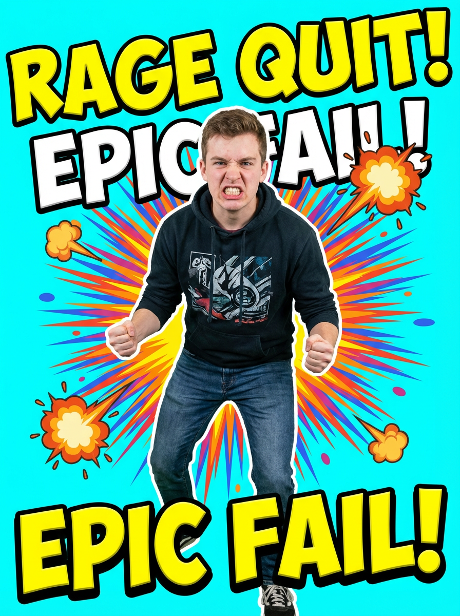 the image is a vibrant and colorful thumbnail, typically used for a youtube video. model with clenched fists and angry face, bright plain cyan background