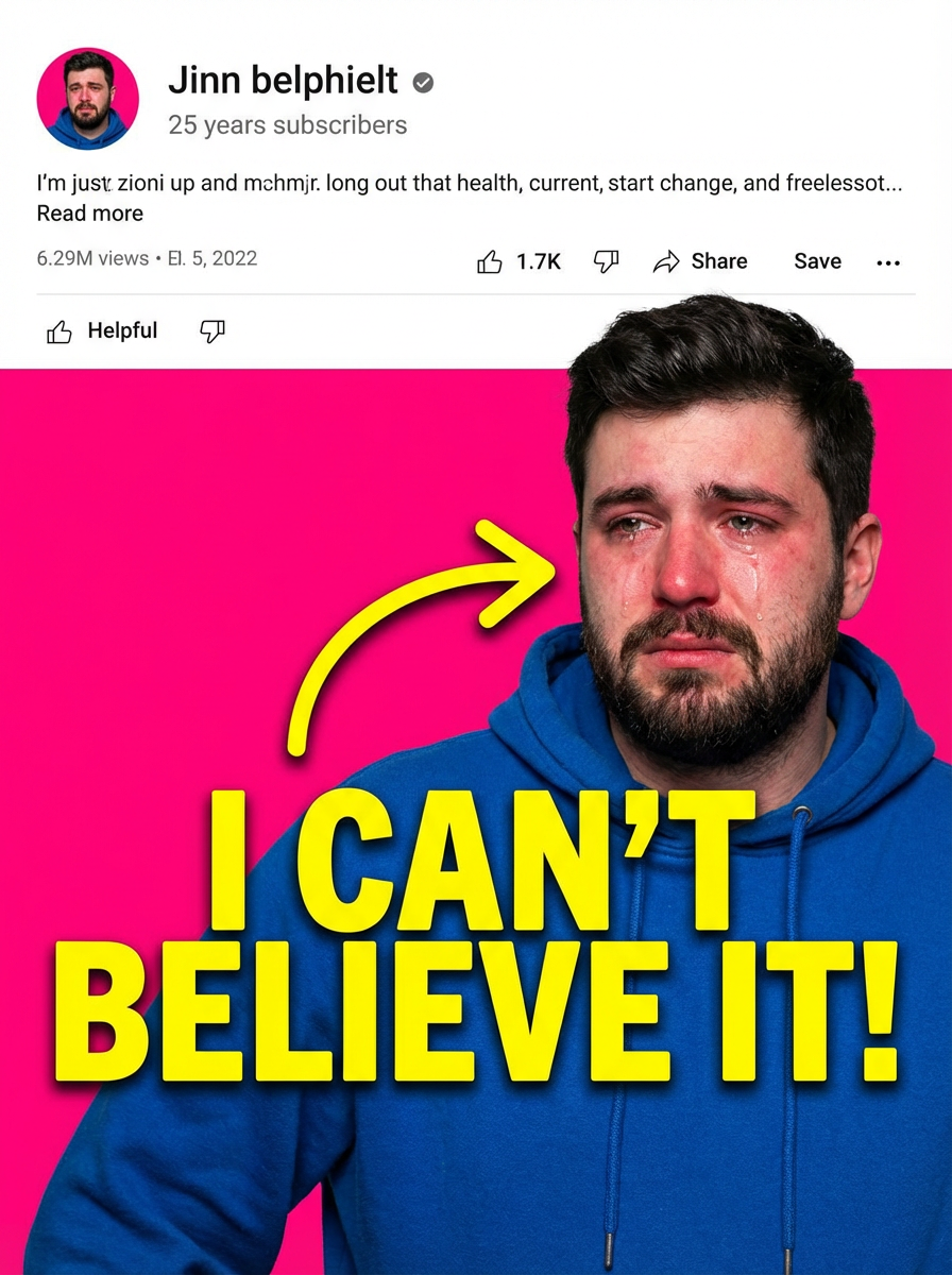 the image is a vibrant and colorful thumbnail, typically used for a youtube video. model with tears streaming down face, emotional crying, bright plain pink background