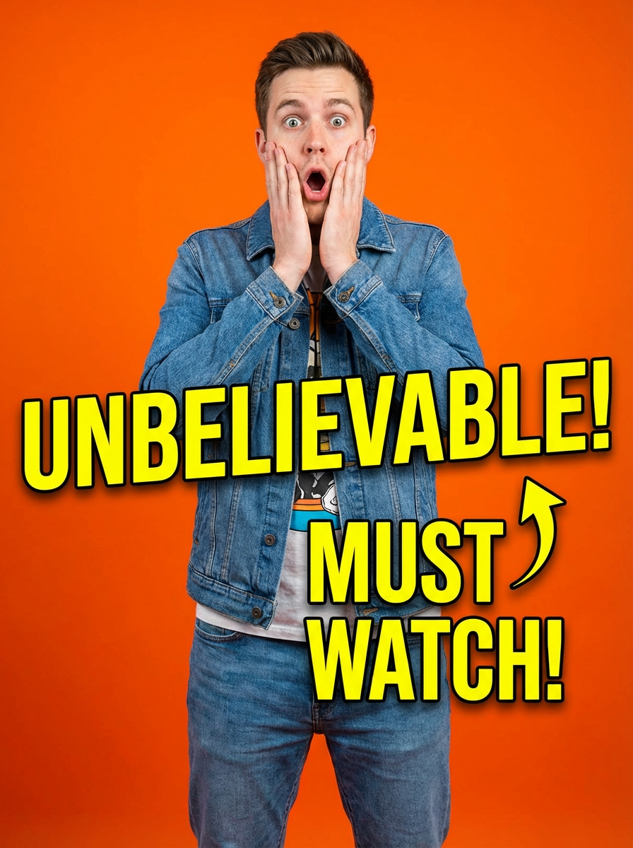the image is a vibrant and colorful thumbnail, typically used for a youtube video. model with hands on cheeks, oh my god expression, bright plain orange background