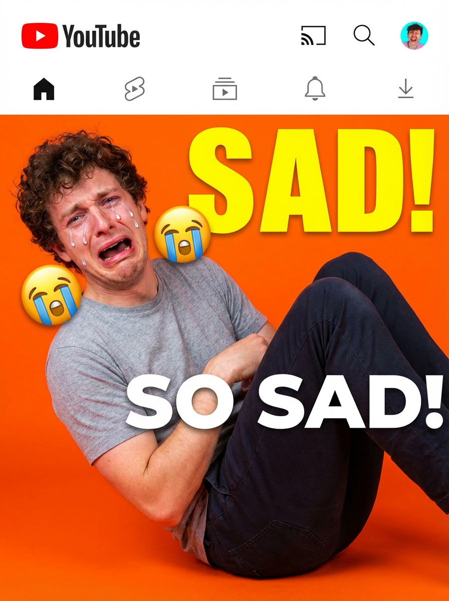 the image is a vibrant and colorful thumbnail, typically used for a youtube video. exaggerated crying model, bright plain orange background