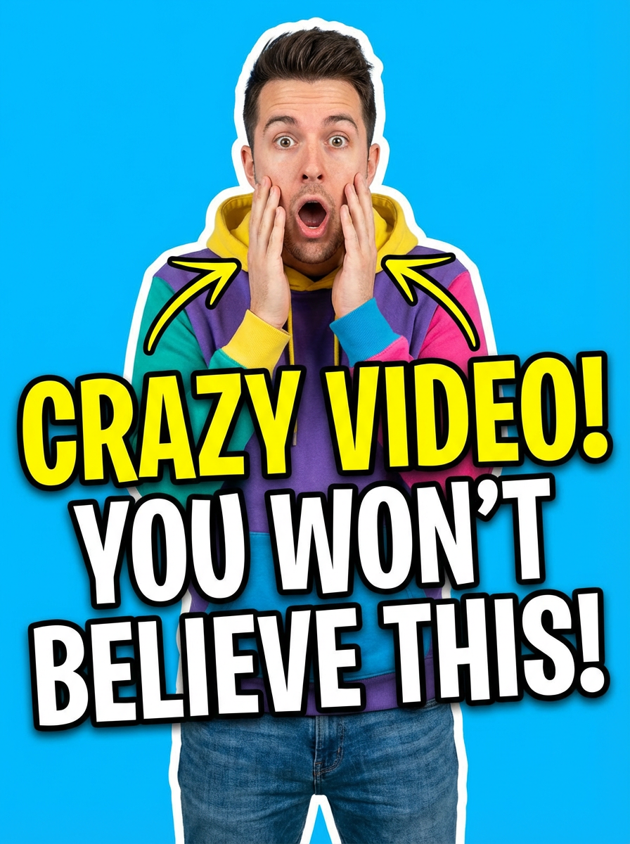 the image is a vibrant and colorful thumbnail, typically used for a youtube video. it features the exaggerated face of one model expressing shock and humor, emphasizing the crazy theme of the video. their face is outlined with a white stroke to make it stand out against the bright plain blue background. this type of design is commonly used to attract viewers on social media platforms by promising entertaining and possibly awkward content.