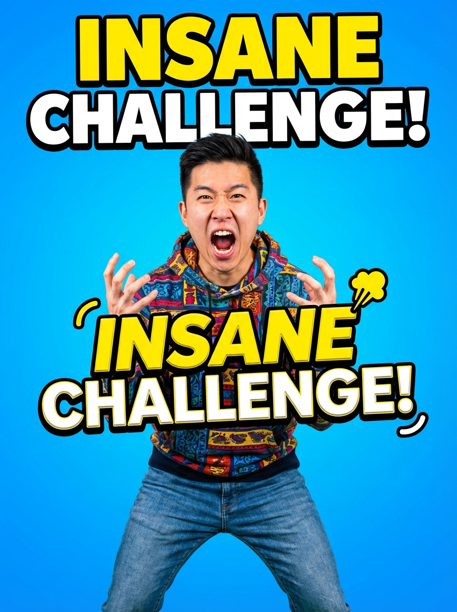 the image is a vibrant and colorful thumbnail, typically used for a youtube video. model with mouth wide open screaming yelling shouting, bright plain blue background