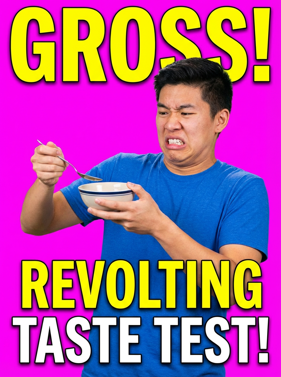 the image is a vibrant and colorful thumbnail, typically used for a youtube video. exaggerated feels disgusted repulsed revolted nauseated sickened appalled horrified model, bright plain magenta background