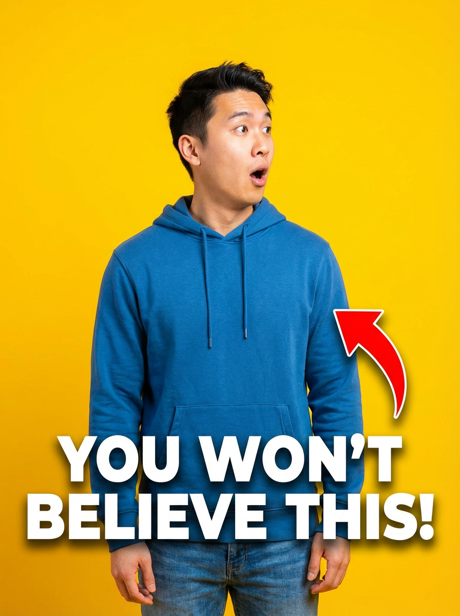 the image is a vibrant and colorful thumbnail, typically used for a youtube video. model looking right with surprised face, bright plain yellow background