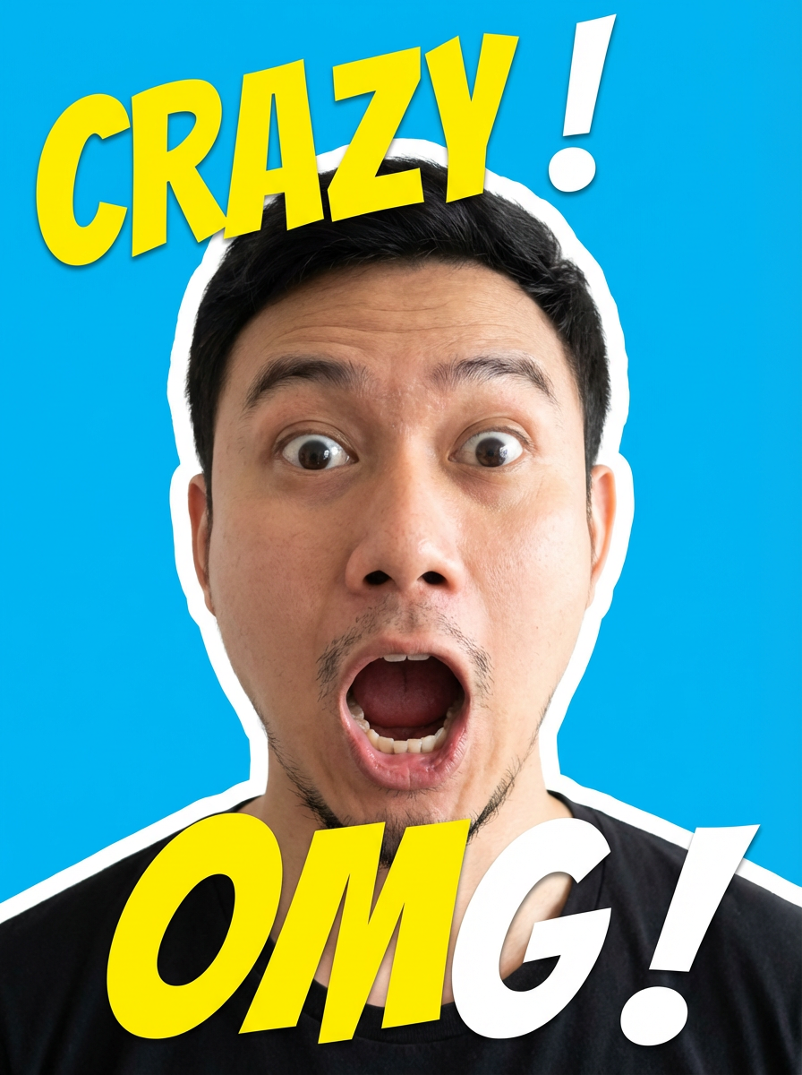 the image is a vibrant and colorful thumbnail, typically used for a youtube video. it features the exaggerated face of one model expressing shock and humor, emphasizing the crazy theme of the video. their face is outlined with a white stroke to make it stand out against the bright plain blue background. this type of design is commonly used to attract viewers on social media platforms by promising entertaining and possibly awkward content.