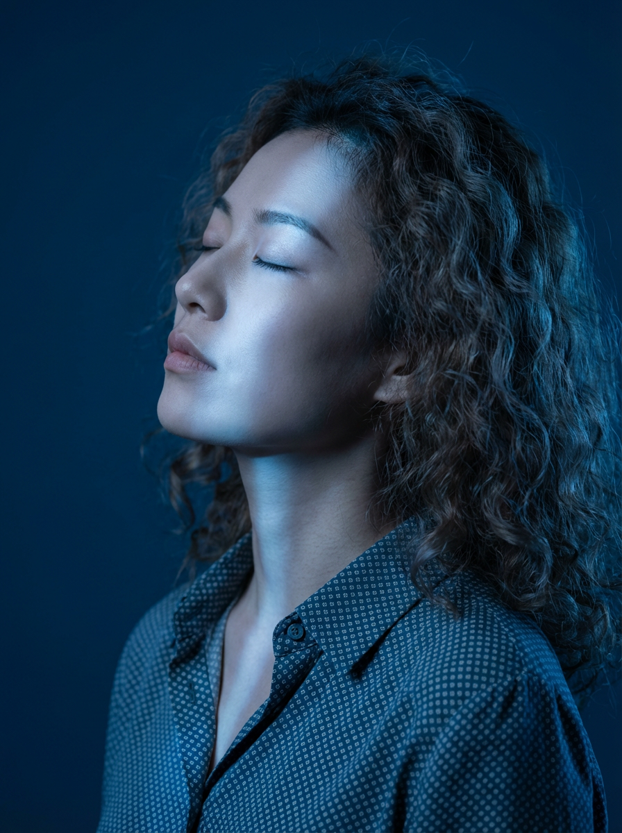 {"type": "image_generation_prompt", "concept": {"description": "An artistic editorial close-profile portrait of a young model, immersed in dramatic blue lighting. Her eyes are closed, with her head gently tilted upward, expressing serenity and introspection.", "mood": "quiet, introspective, ethereal", "color_theme": "deep blue with cold highlights"}, "subject": {"gender": "model", "identity_preservation": {"use_reference_image": true, "alter_face": false, "notes": "Maintain the subject’s exact facial features, structure, skin tone, and identity from the uploaded image."}, "pose": {"name": "Blue Profile", "head_position": "slightly tilted upward", "eyes": "closed", "expression": "serene and introspective", "highlight": "diagonal beam of light crossing the face, enhancing facial contours"}, "appearance": {"hair": {"style": "curly, voluminous, well-defined", "lighting_effect": "subtle blue reflections"}, "clothing": {"shirt": "petroleum-blue shirt with light gray micro-geometric print", "fabric": "lightweight material with soft shine under direct light", "collar": "traditional, top button open to reveal part of the neck", "details": {"cuffs": "adjusted cuffs", "stitching": "visible dark blue stitching", "fit": "elegant and modern"}}, "accessories": "none visible"}}, "camera_settings": {"camera": "Canon EOS R5", "lens": "85mm f/1.4", "aperture": "f/2.2", "iso": 320, "shutter_speed": "1/200s", "framing": "close-up profile, vertical 4:5 format", "resolution": "Ultra-HD 8K", "focus": "absolute focus on the face, capturing skin texture, hair, and light transitions"}, "lighting": {"type": "dramatic cold diagonal beam", "background": "deep solid blue", "effects": ["precise illumination on eyes, nose, and mouth", "soft enhancement of facial contours", "editorial contrast and silence-like aesthetic"]}, "visual_style": {"genre": "artistic editorial portrait", "contrast_level": "medium-high", "tone": "cold, atmospheric", "keywords": ["cinematic", "high-fashion", "introspective", "ethereal"]}, "output_goal": "Create an ultra-realistic editorial portrait of a young model in dramatic blue lighting, preserving her identity while capturing a serene, introspective moment in close-profile composition."}