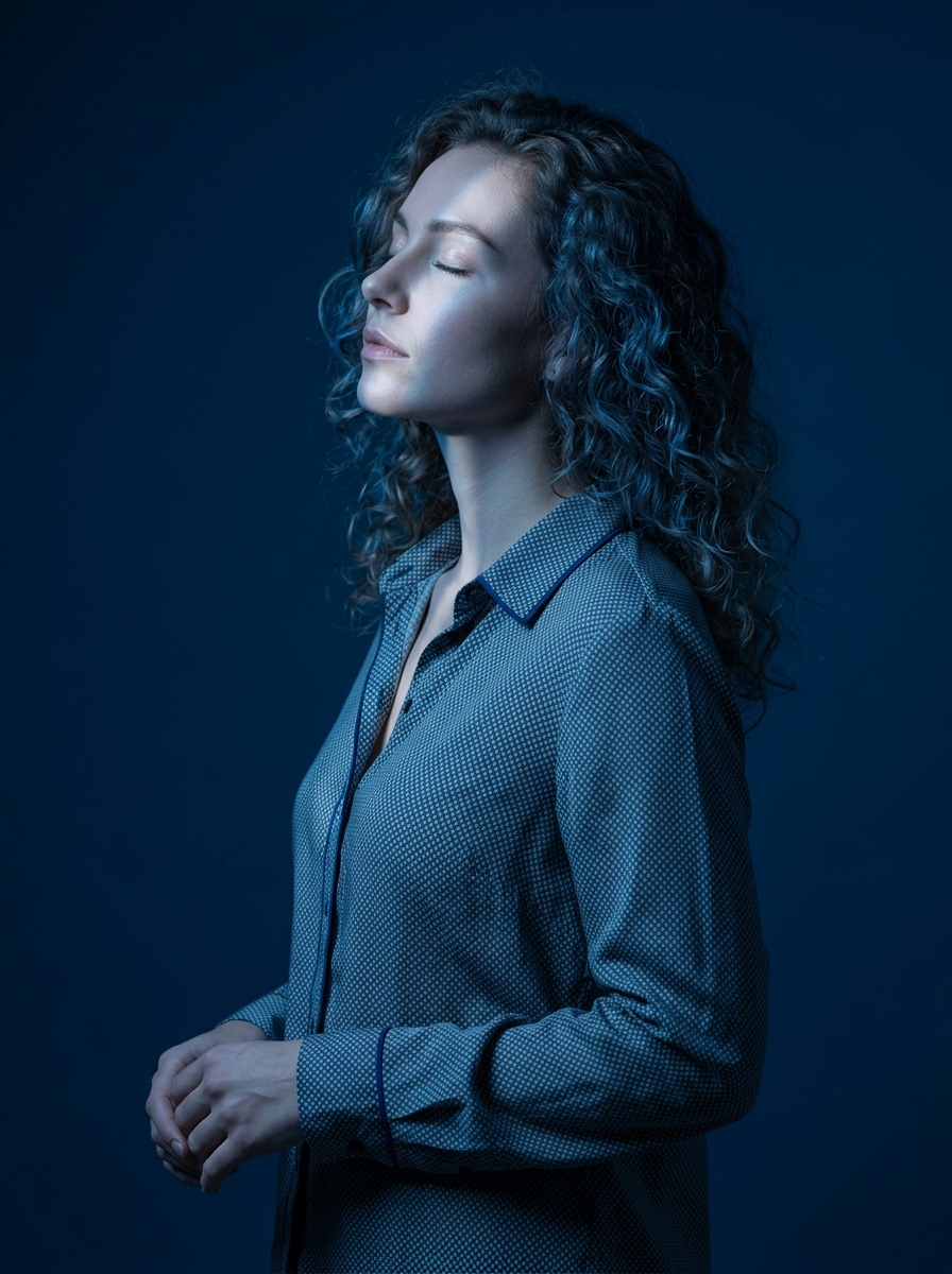 {"type":"image_generation_prompt","concept":{"description":"An artistic editorial close-profile portrait of a young model, immersed in dramatic blue lighting. Her eyes are closed, with her head gently tilted upward, expressing serenity and introspection.","mood":"quiet, introspective, ethereal","color_theme":"deep blue with cold highlights"},"subject":{"gender":"model","identity_preservation":{"use_reference_image":true,"alter_face":false,"notes":"Maintain the subject\u2019s exact facial features, structure, skin tone, and identity from the uploaded image."},"pose":{"name":"Blue Profile","head_position":"slightly tilted upward","eyes":"closed","expression":"serene and introspective","highlight":"diagonal beam of light crossing the face, enhancing facial contours"},"appearance":{"hair":{"style":"curly, voluminous, well-defined","lighting_effect":"subtle blue reflections"},"clothing":{"shirt":"petroleum-blue shirt with light gray micro-geometric print","fabric":"lightweight material with soft shine under direct light","collar":"traditional, top button open to reveal part of the neck","details":{"cuffs":"adjusted cuffs","stitching":"visible dark blue stitching","fit":"elegant and modern"}},"accessories":"none visible"}},"camera_settings":{"camera":"Canon EOS R5","lens":"85mm f\/1.4","aperture":"f\/2.2","iso":320,"shutter_speed":"1\/200s","framing":"close-up profile, vertical 4:5 format","resolution":"Ultra-HD 8K","focus":"absolute focus on the face, capturing skin texture, hair, and light transitions"},"lighting":{"type":"dramatic cold diagonal beam","background":"deep solid blue","effects":["precise illumination on eyes, nose, and mouth","soft enhancement of facial contours","editorial contrast and silence-like aesthetic"]},"visual_style":{"genre":"artistic editorial portrait","contrast_level":"medium-high","tone":"cold, atmospheric","keywords":["cinematic","high-fashion","introspective","ethereal"]},"output_goal":"Create an ultra-realistic editorial portrait of a young model in dramatic blue lighting, preserving her identity while capturing a serene, introspective moment in close-profile composition."}