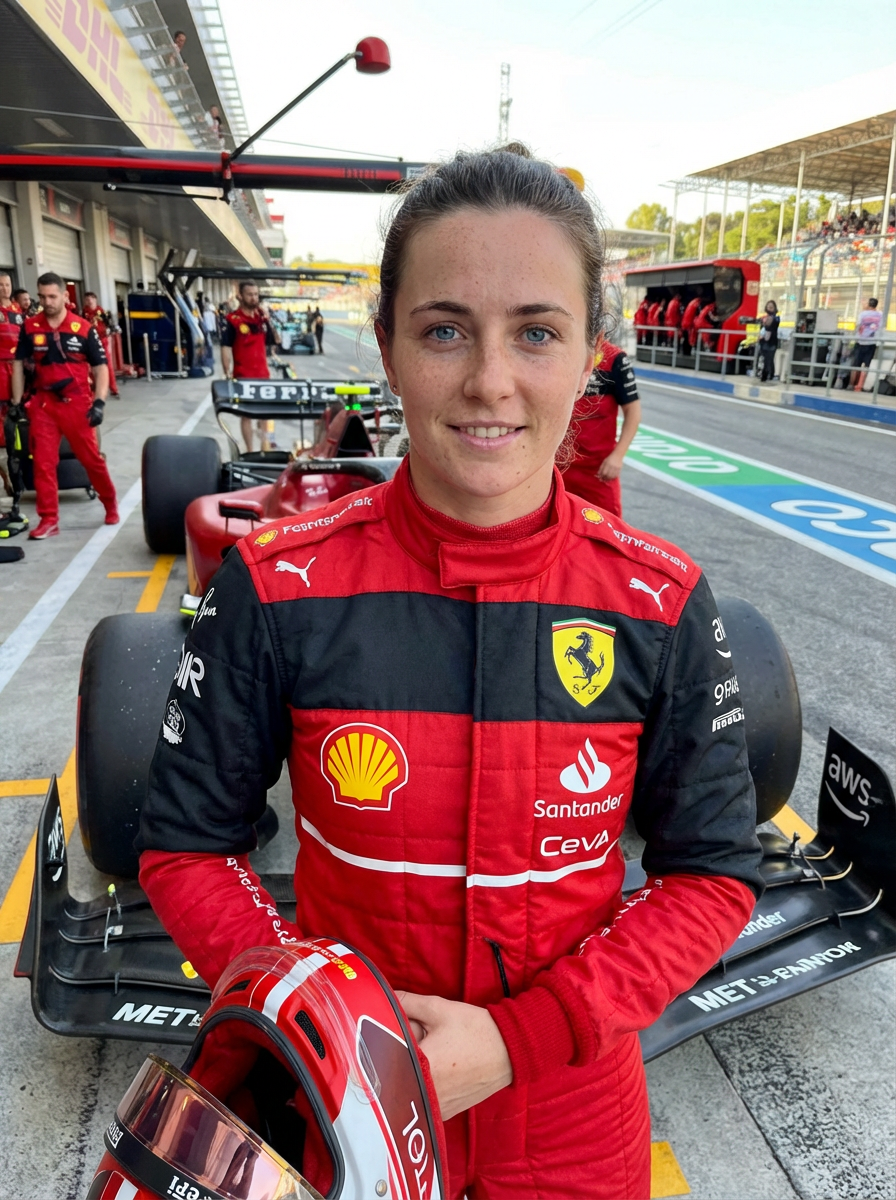 Ultra realistic photograph of model as Formula 1 race driver