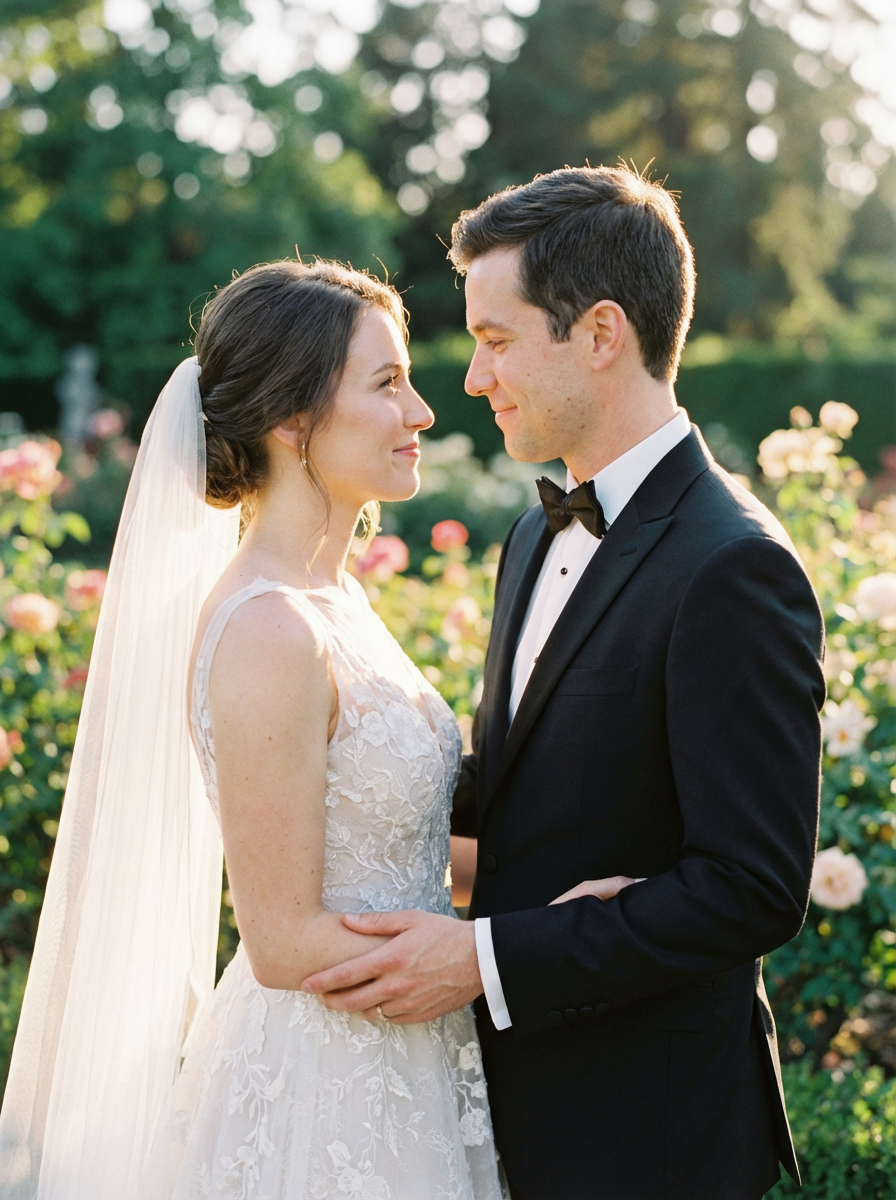 { "Use [man_face] and [woman_fac]. Ultra-realistic high-end luxury wedding photography of a bride and groom standing closely together in an elegant outdoor ceremony setting. Golden hour sunlight casting warm soft highlights, natural rim light around their silhouettes, cinematic dynamic range. The bride wearing a premium handcrafted lace wedding gown with intricate embroidery details, soft flowing veil illuminated by backlight, subtle pearl accessories, refined natural bridal makeup with luminous skin texture, finely detailed eyelashes and catchlights in eyes. The groom wearing a tailored tuxedo with satin lapels, crisp shirt, luxury bow tie, polished boutonniere. Both posing in a candid yet editorial fashion – gentle eye contact, soft romantic smile, hands touching gracefully. Background featuring a softly blurred bokeh garden with roses, organic greenery, warm tones, shallow depth of field created by an 85mm f/1.4 full-frame lens. High-definition textures, ultra sharp facial details, realistic pores, true-to-life skin tones, natural hair strands, perfect color grading inspired by premium wedding photographers. Soft pastel color palette, creamy highlights, subtle film grain, magazine cover aesthetic. Cinematic global illumination, perfect exposure balance, no distortion, no artifacts. Award-winning photography style with fine-art wedding composition, dramatic yet soft lighting, museum-quality detail clarity.", "negative_prompt": "cartoon, illustration, painting, CGI, artificial look, uncanny valley, distorted facial features, extra limbs, deformed body parts, mismatched eyes, unnatural skin texture, plastic skin, blur, noise, pixelation, low resolution, oversaturated colors, washed out colors, hard flash, harsh shadows, blown highlights, low contrast, lens distortion, fisheye, bad anatomy, extra fingers, incorrect hand shapes, watermark, text, logo, border, frame, compression artifacts, glitch, unrealistic proportions, double face, duplicate subjects, warped background", "camera_settings": { "lens": "85mm f/1.4 prime", "iso": 100, "shutter_speed": "1/400", "aperture": "f/1.4", "white_balance": "5200K daylight" }, "style": { "lighting": "soft natural golden hour, cinematic rim light, high dynamic range", "color_grade": "premium wedding film look, pastel tones, creamy highlights, warm undertones", "atmosphere": "romantic, elegant, fine-art editorial" }, "composition": { "framing": "mid-shot portrait, slight angle, bride and groom centered", "focus": "sharp eyes, smooth bokeh background", "depth_of_field": "shallow, subject separation emphasized" }, "width": 1024, "height": 1536, "num_inference_steps": 36, "guidance_scale": 8.0, "seed": 12345 }