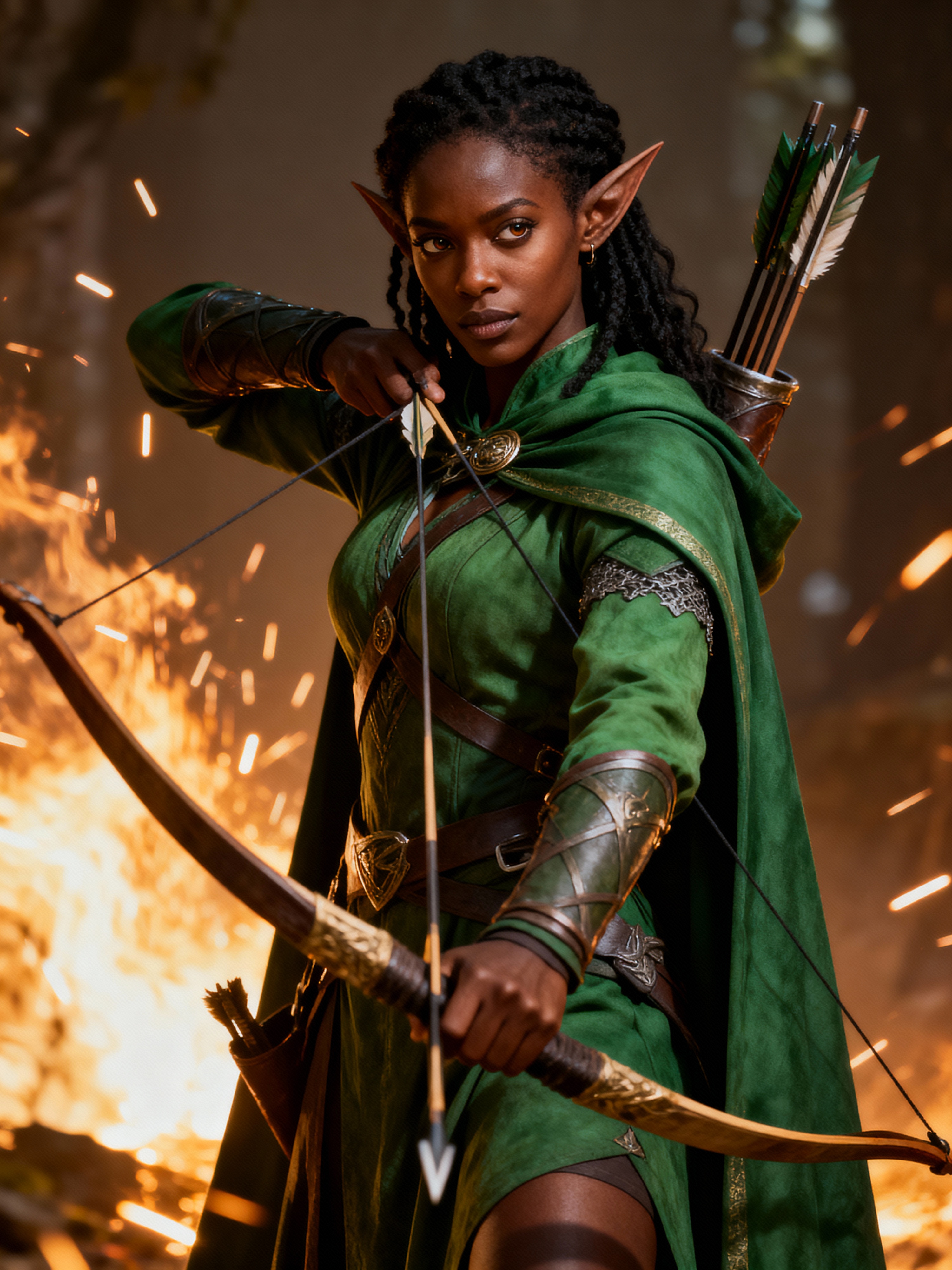 model as a Medieval Elf Archer Warrior in Green Robe