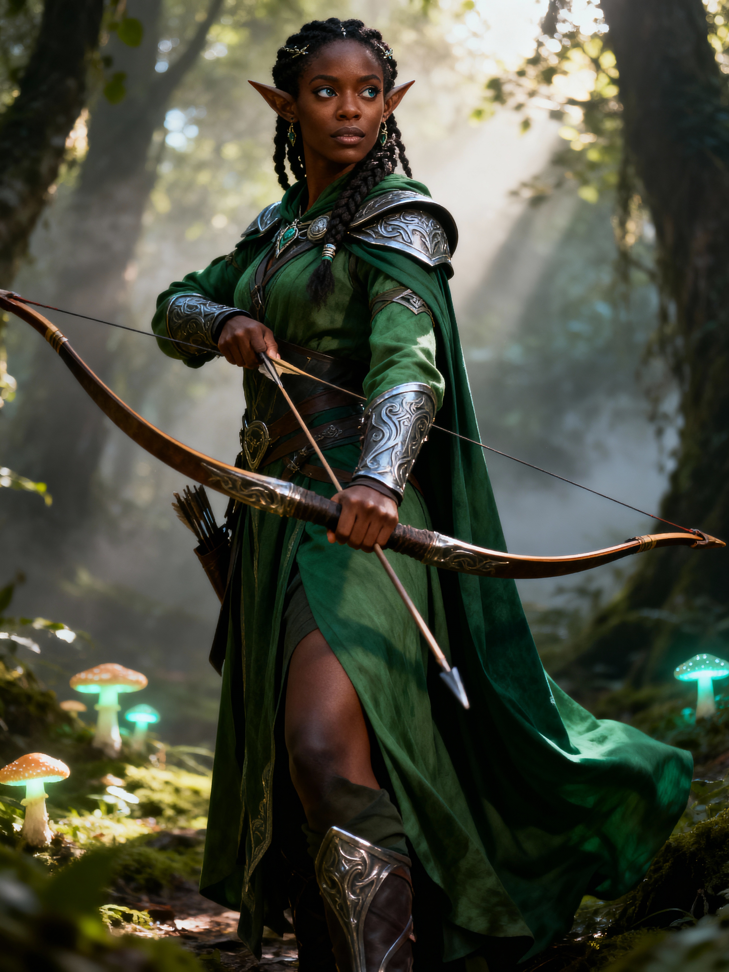model as a Medieval Elf Archer Warrior in Green Robe