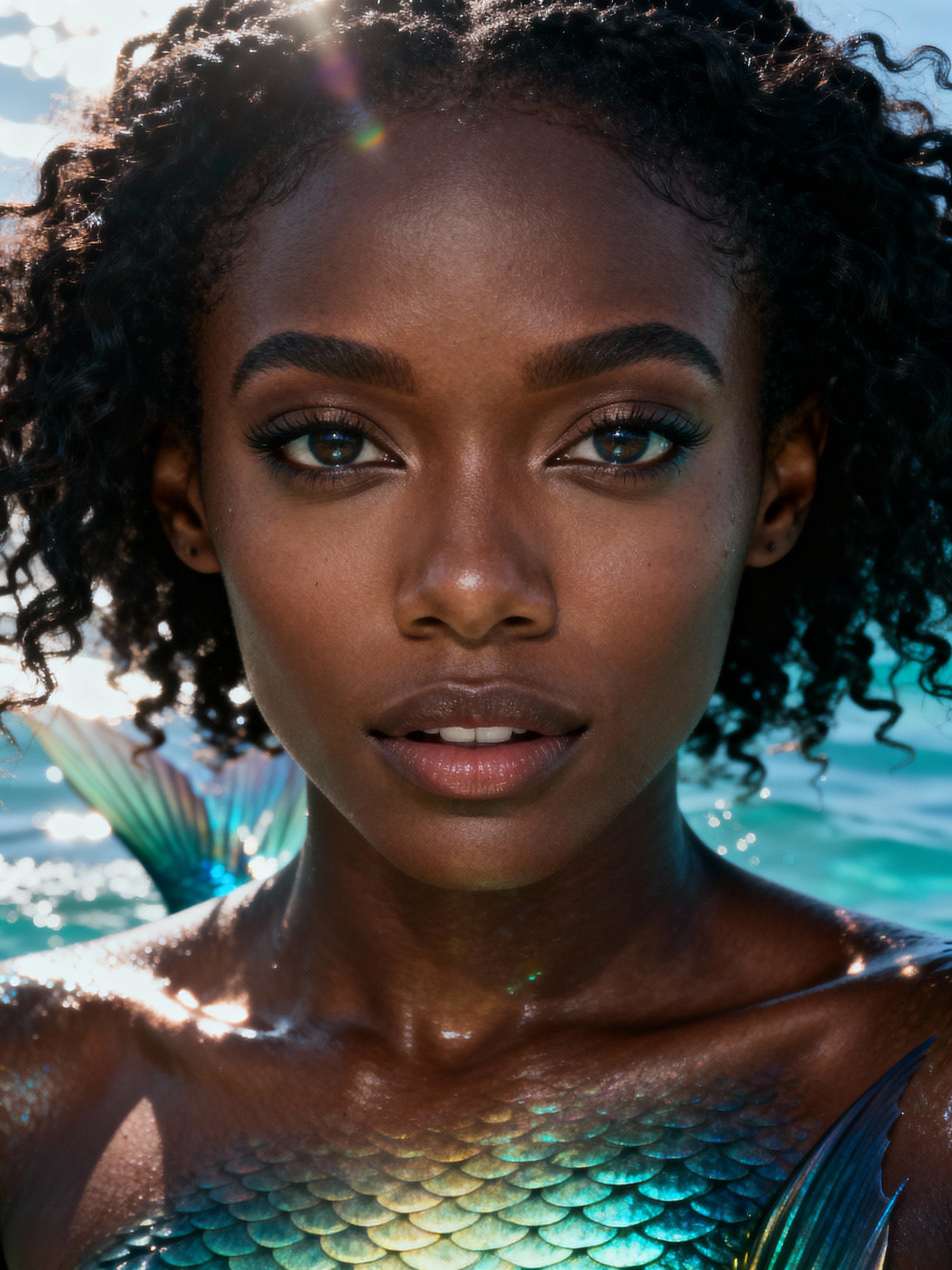 model as a Mermaid the head and upper body of a human and the tail of a fish