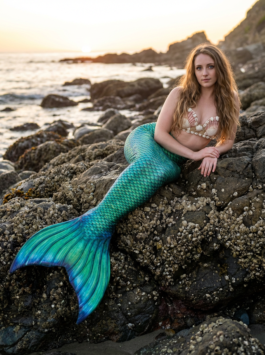 model as a Mermaid the head and upper body of a human and the tail of a fish
