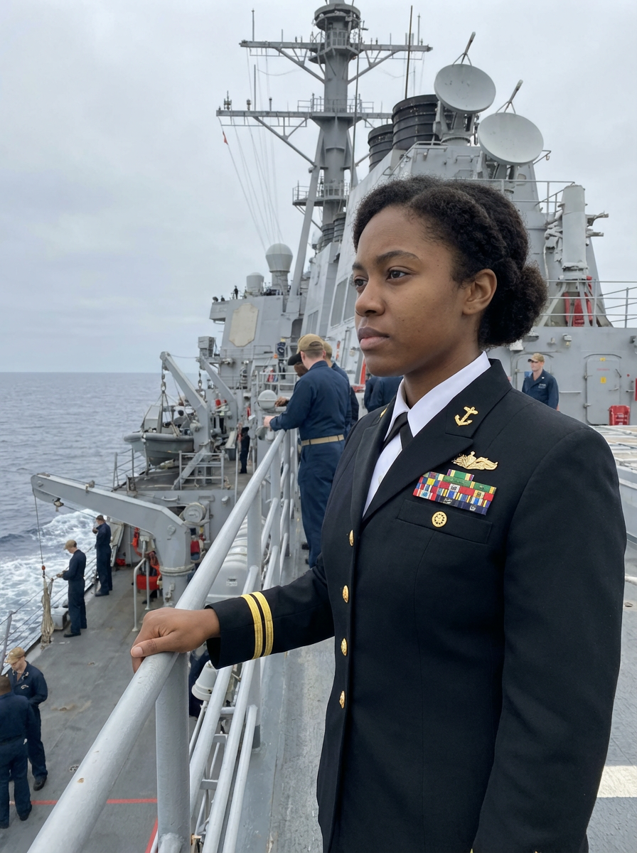 model as a Navy Officer on a ship. highly detailed