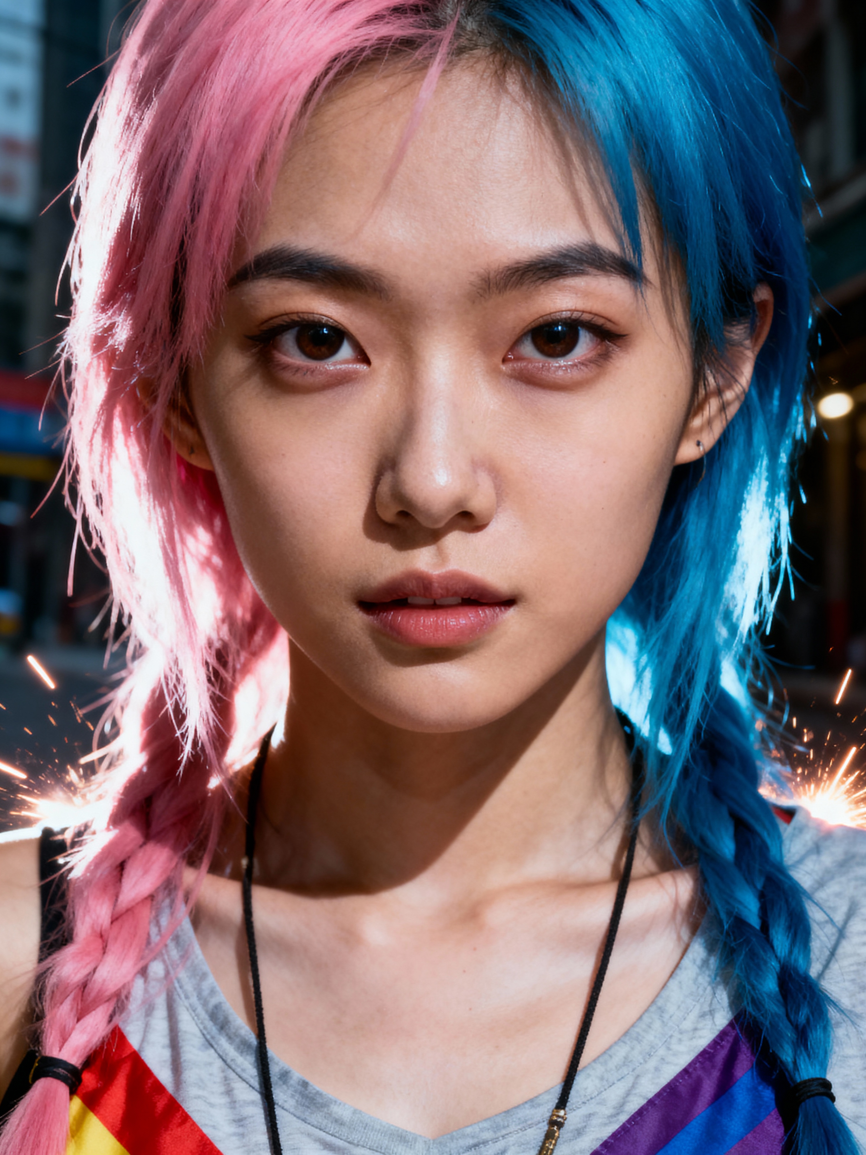 model as a progressive LGBTQ activist feminist with pink or blue hair