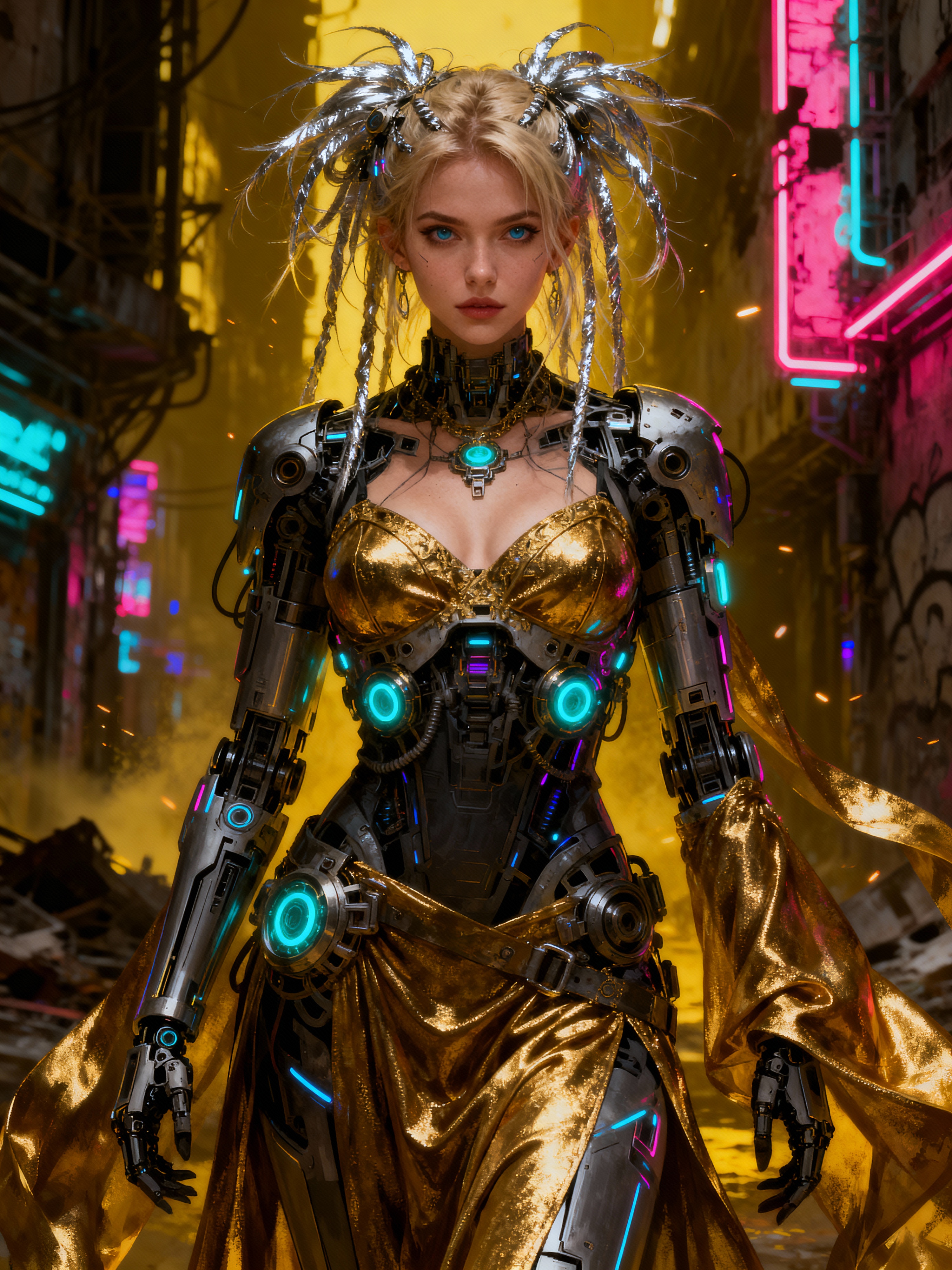 model as a soft lustrous biotech raver gutter punk gothic cyborg, golden ratio, details, scifi, fantasy, cyberpunk, intricate, decadent, digital painting, octane render, artstation, concept art, smooth, sharp focus, illustration, art by artgerm, loish, wlop