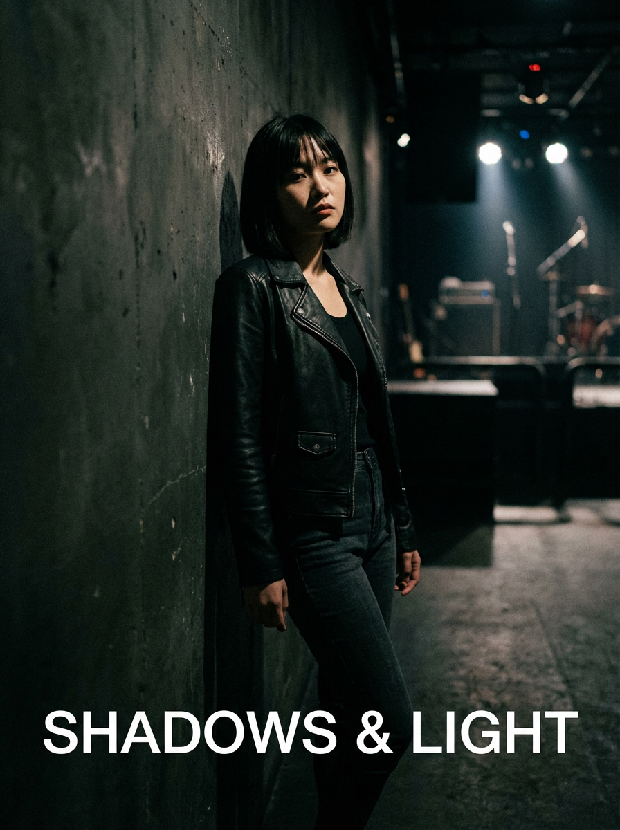 model as album cover star, dramatic artistic lighting, moody atmosphere, high contrast, professional music industry aesthetic