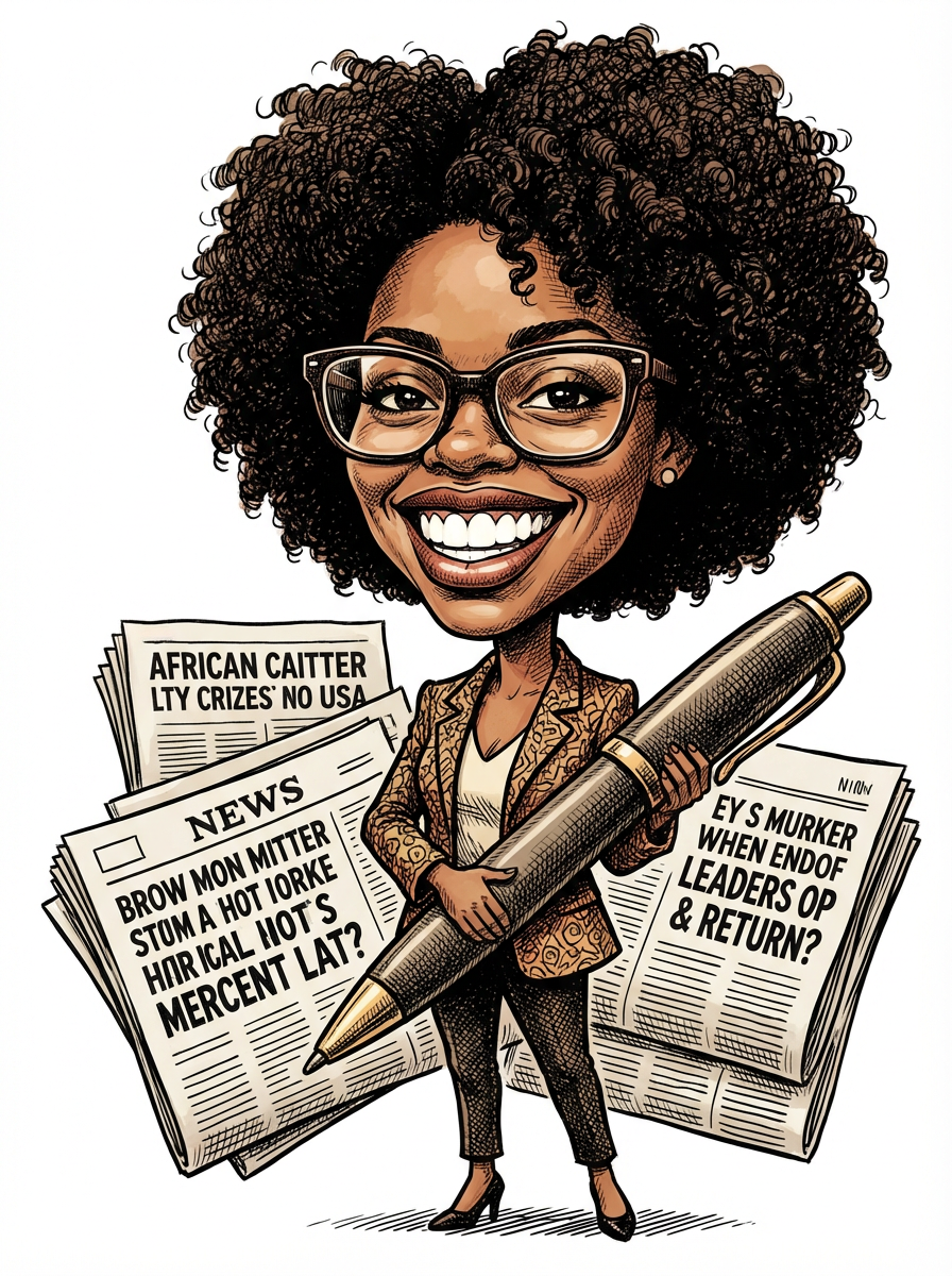 model as caricature, exaggerated features, humorous portrait, editorial cartoon style