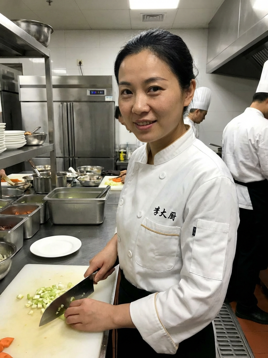 Related photosman as head chef, professional double-breasted chef coat, commanding presence, busy kitchen backgroundwoman as head chef, professional double-breasted chef coat, commanding presence, busy kitchen backgroundwoman as head chef, professional double-breasted chef coat, commanding presence, busy kitchen backgroundman in tuxedo  at Met Galawoman with black hair dyedheadshot of woman, crisp details, executive attire, confident posture, happy expression, high-definition, sharp focus, ambient lighting, business professional, Background features a modern office setting blurred office furniture, and overhead lighting. The atmosphere is bright with natural and artificial light.