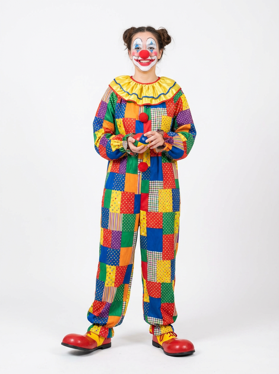 model as Clown with Clown Makeup, blank background