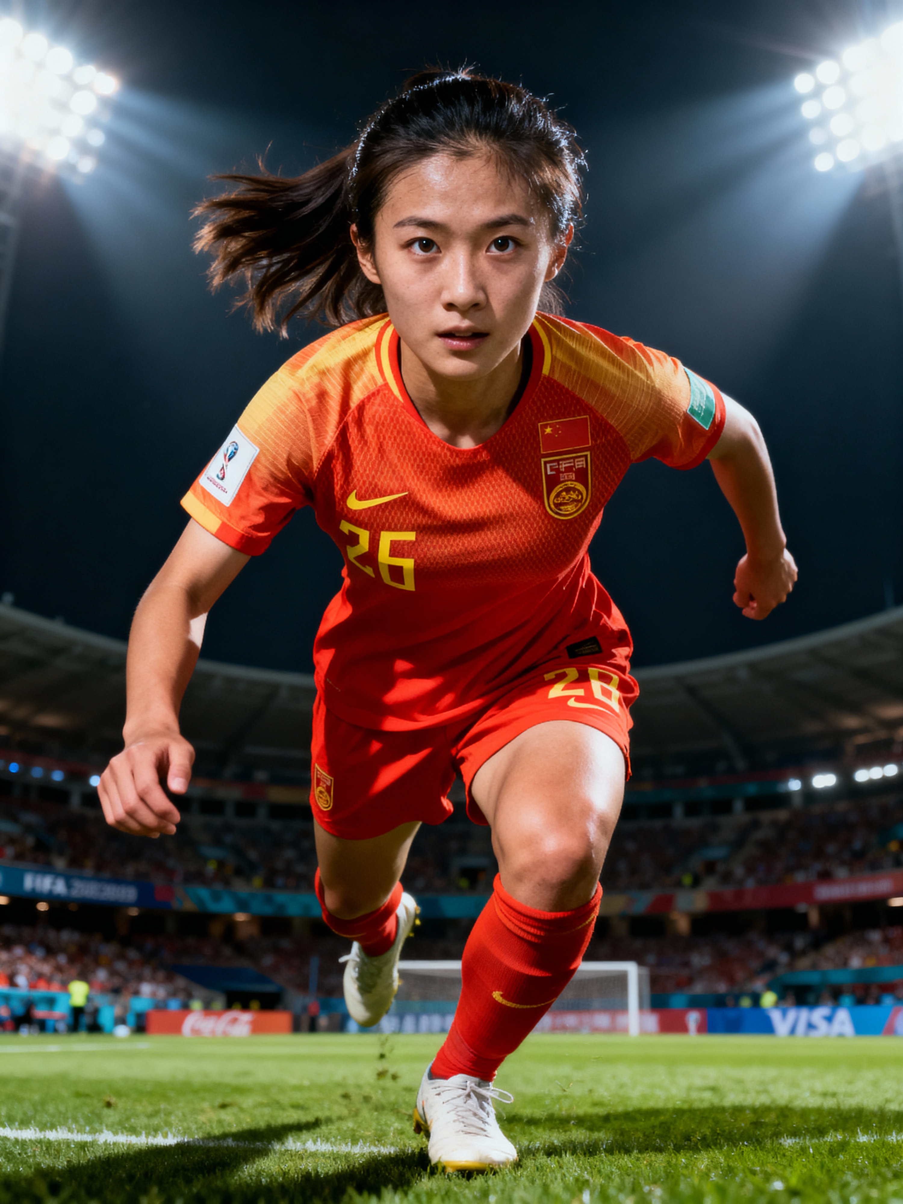 model as Football Player in the FIFA World Cup playing in a Football Match