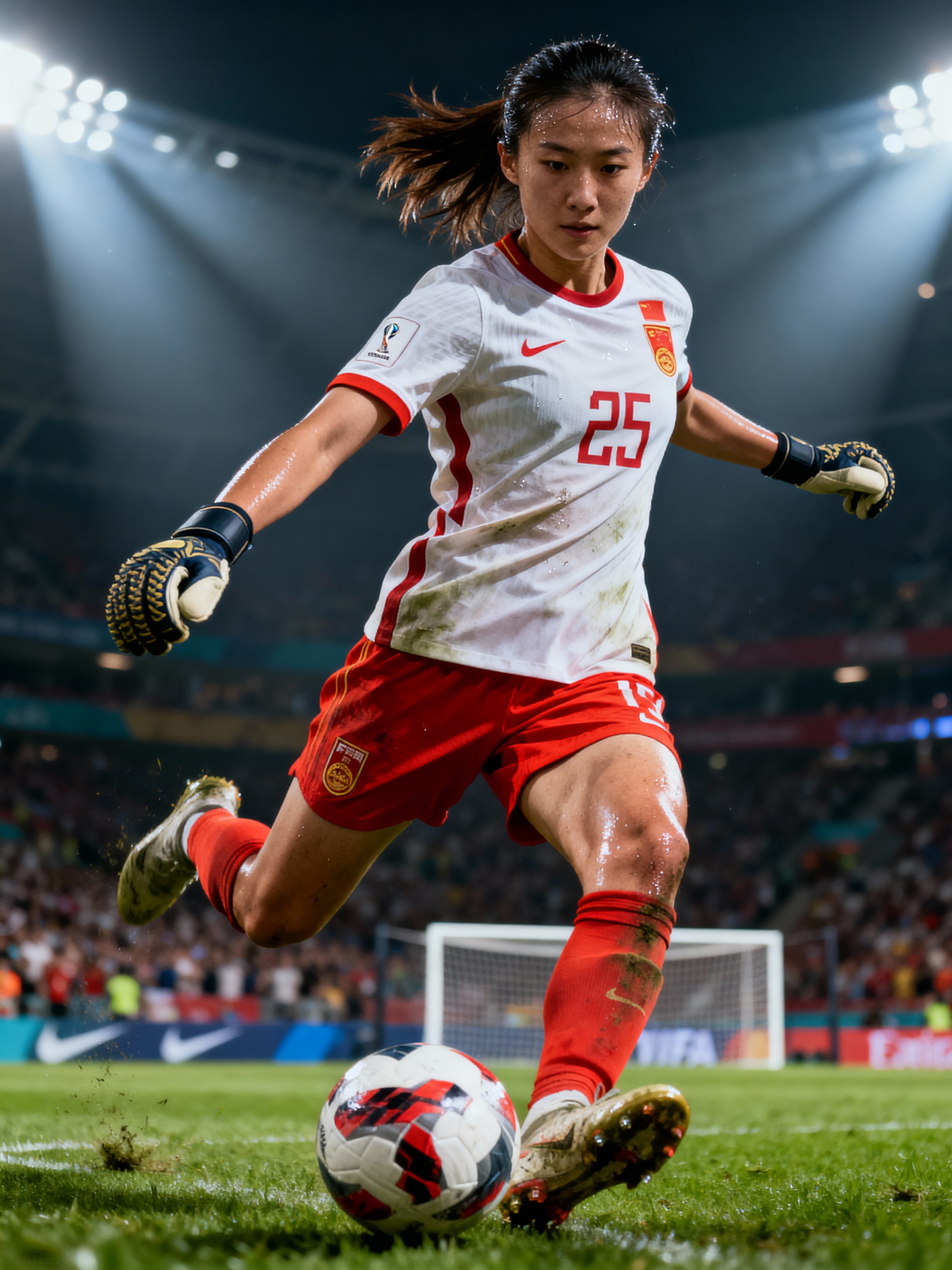 model as Football Player in the FIFA World Cup playing in a Football Match