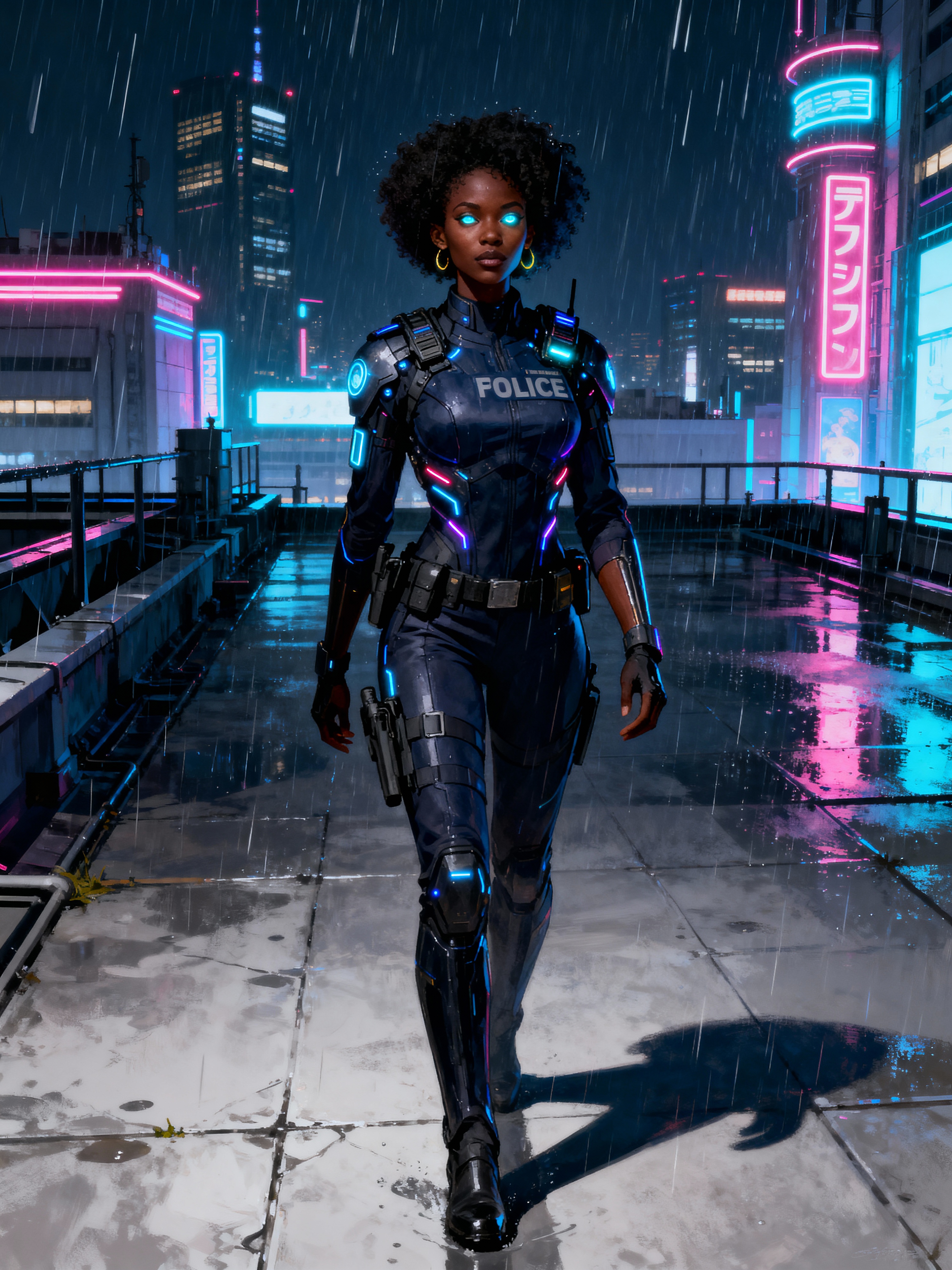 model as futuristic beautiful cyberpunk police officer, in heavy rainning futuristic tokyo rooftop cyberpunk night, ssci-fi, fantasy, intricate, very very beautiful, elegant, neon light, highly detailed, digital painting, artstation, concept art, soft light, hdri, smooth, sharp focus, illustration, art by tian zi and craig mullins and wlop and alphonse mucha