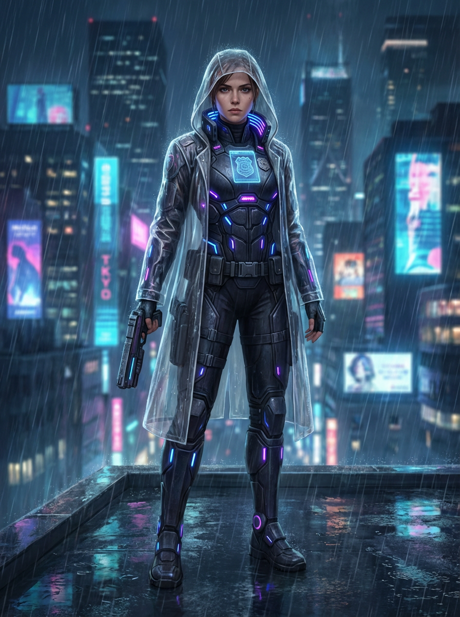 model as futuristic beautiful cyberpunk police officer, in heavy rainning futuristic tokyo rooftop cyberpunk night, ssci-fi, fantasy, intricate, very very beautiful, elegant, neon light, highly detailed, digital painting, artstation, concept art, soft light, hdri, smooth, sharp focus, illustration, art by tian zi and craig mullins and wlop and alphonse mucha