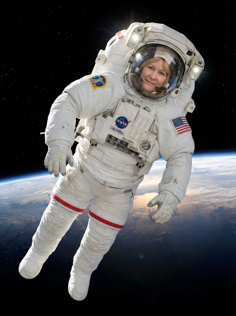 model as NASA Astronaut in space suit