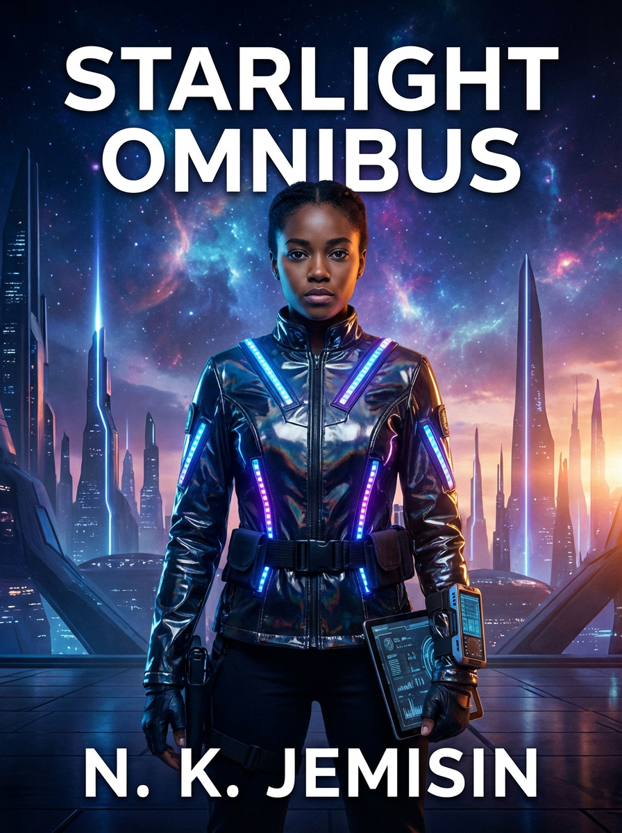 model as sci-fi book cover, futuristic styling, technological elements, otherworldly lighting