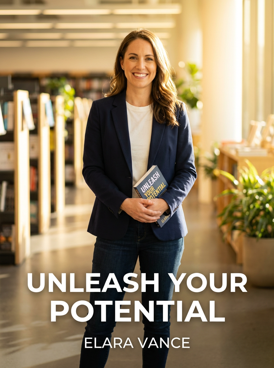 model as self-help book cover, confident inspiring pose, bright optimistic lighting, motivational energy