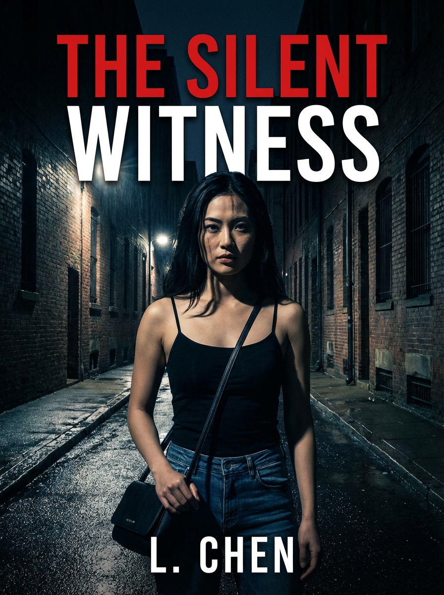 model as thriller book cover, intense gaze, mysterious shadows, urban night setting, suspenseful mood