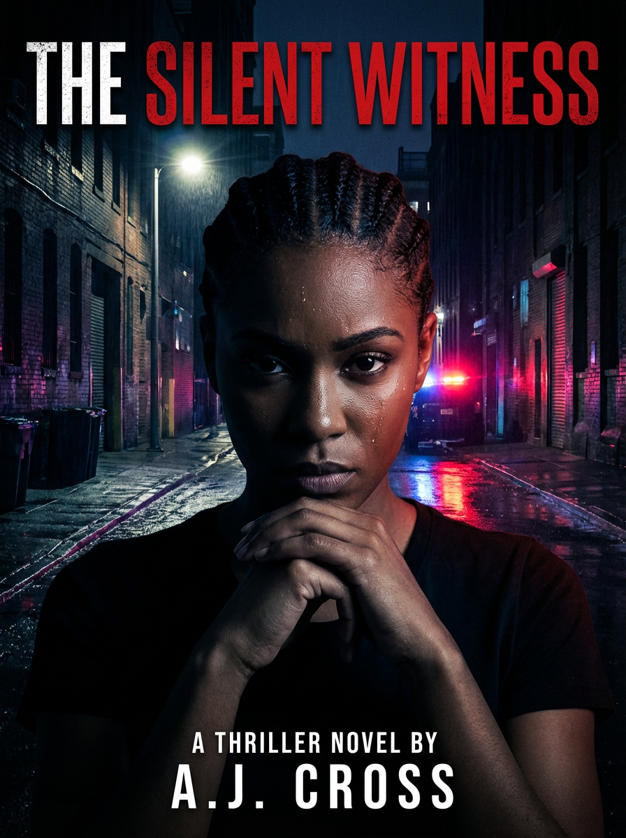 model as thriller book cover, intense gaze, mysterious shadows, urban night setting, suspenseful mood