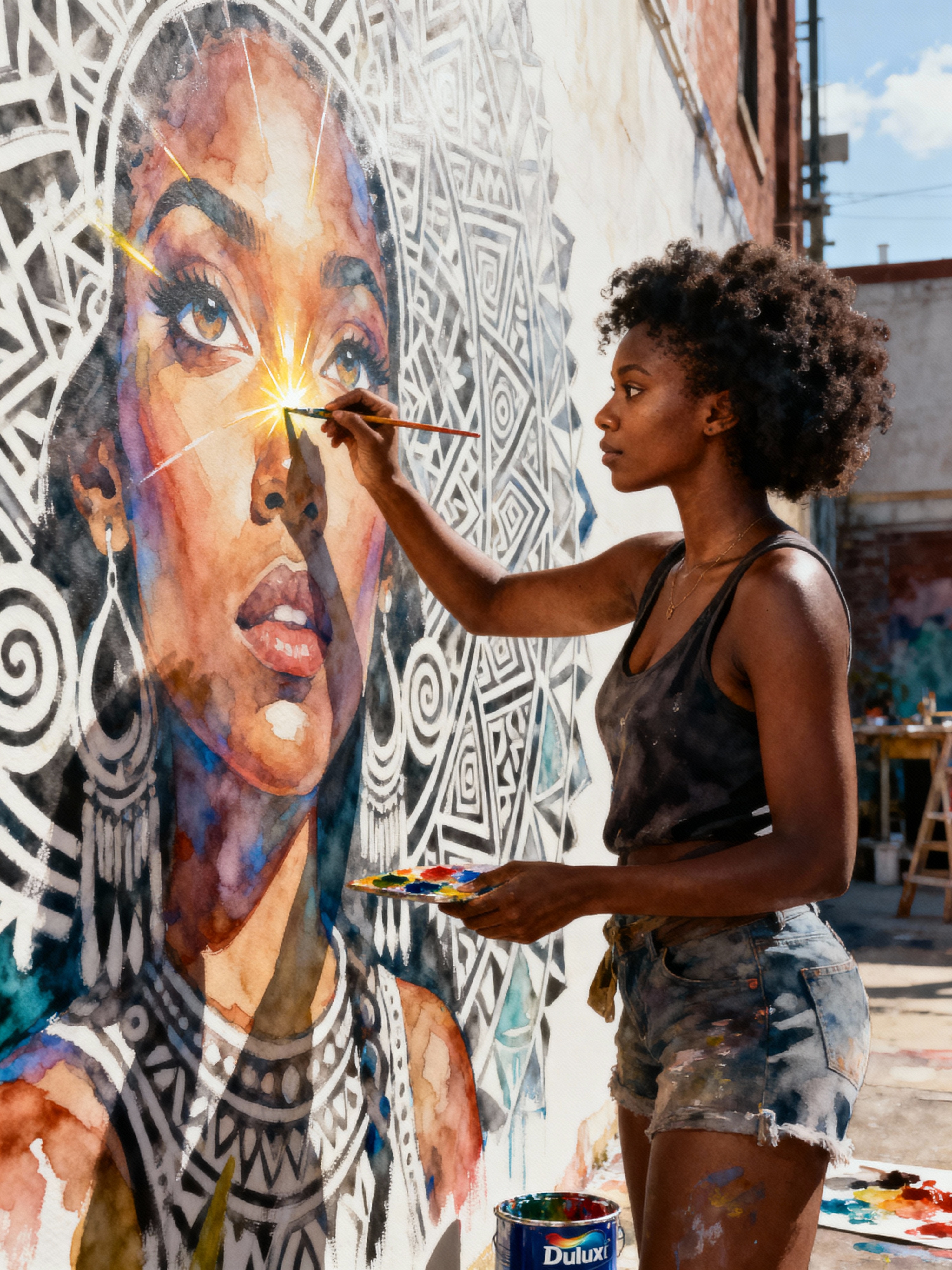 model as water color on paper, master painter painting a mural, highly detailed, artstation, masterpiece, award - winning