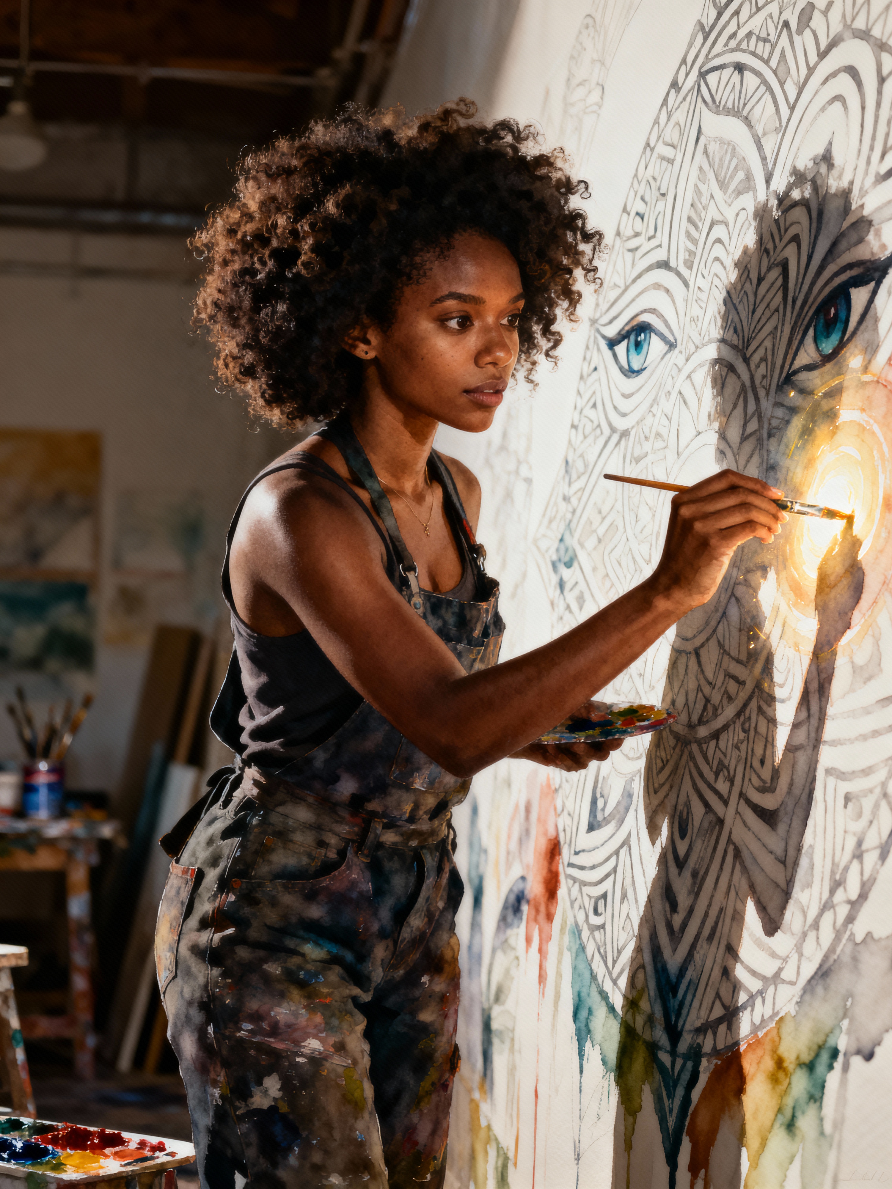 model as water color on paper, master painter painting a mural, highly detailed, artstation, masterpiece, award - winning