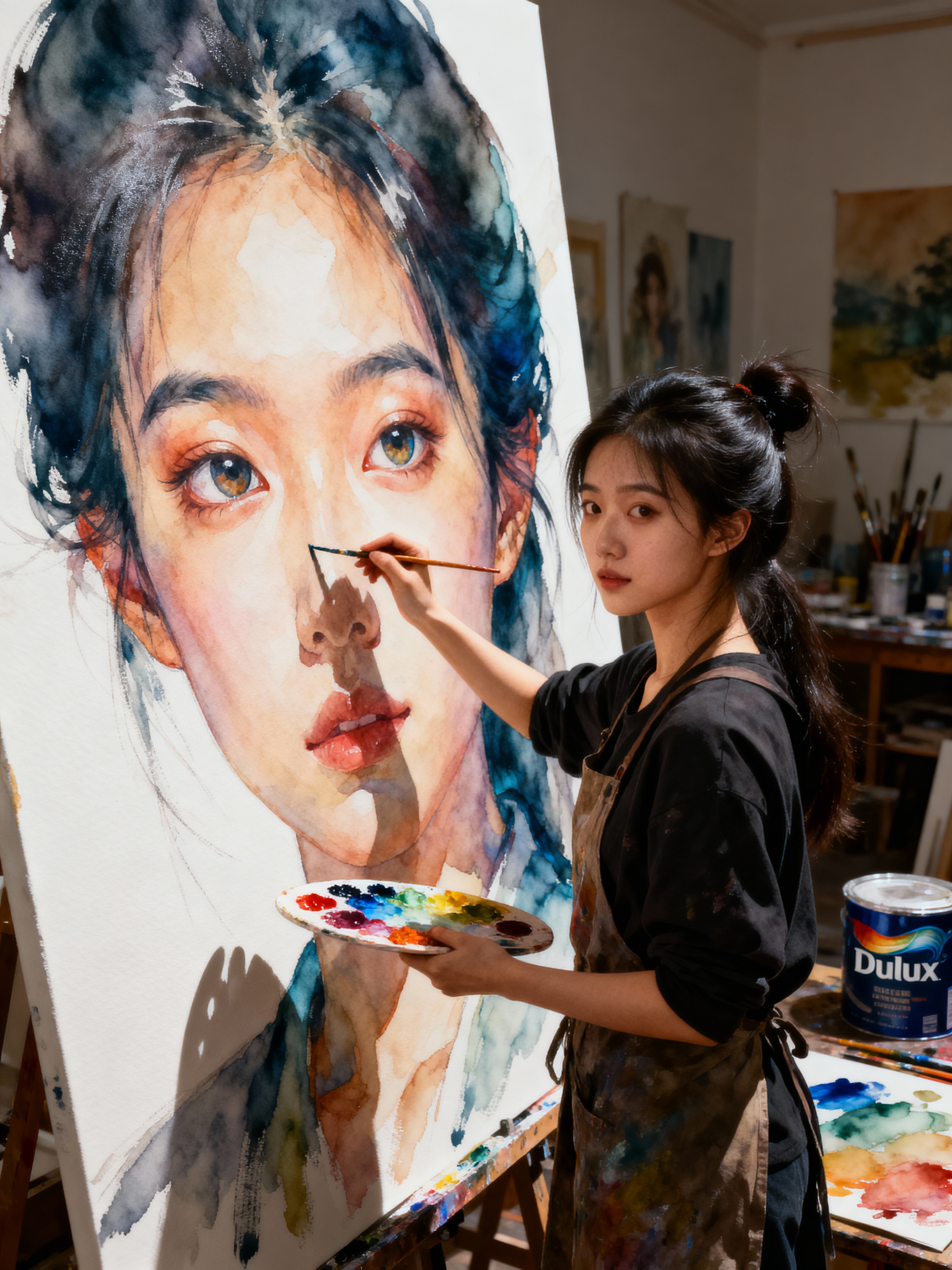 model as water color on paper, master painter painting a mural, highly detailed, artstation, masterpiece, award - winning
