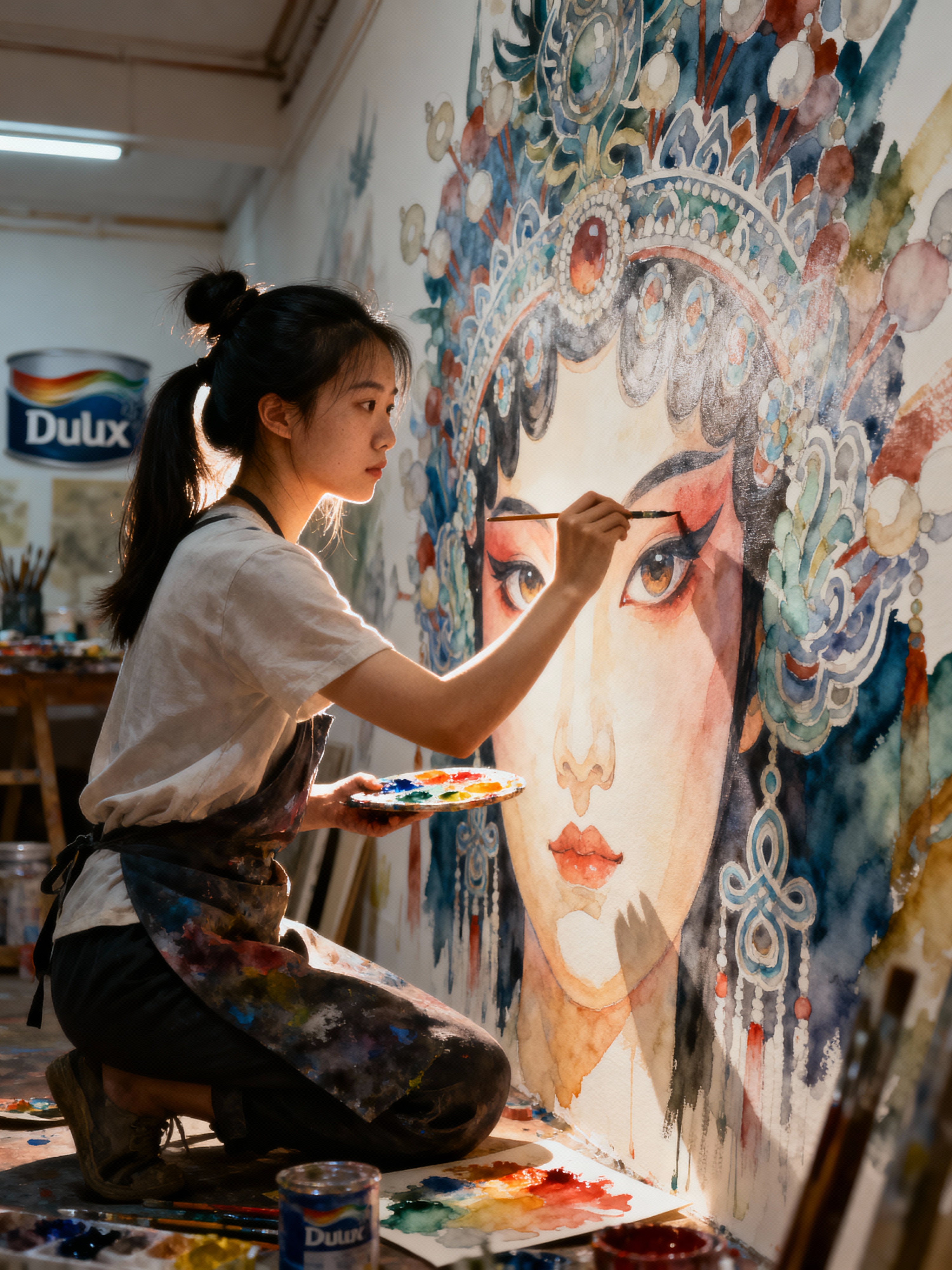 model as water color on paper, master painter painting a mural, highly detailed, artstation, masterpiece, award - winning